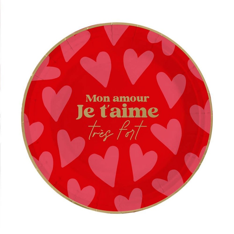 Lot de 6 assiettes romantiques "Mon amour je t'aime très fort".