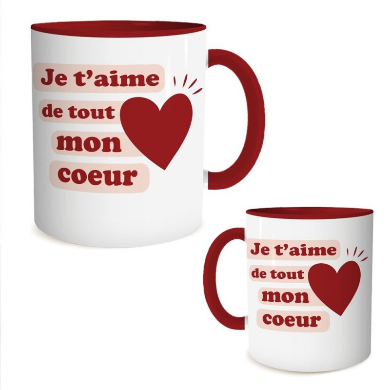 Mug rouge « Je t'aime de tout mon coeur ».