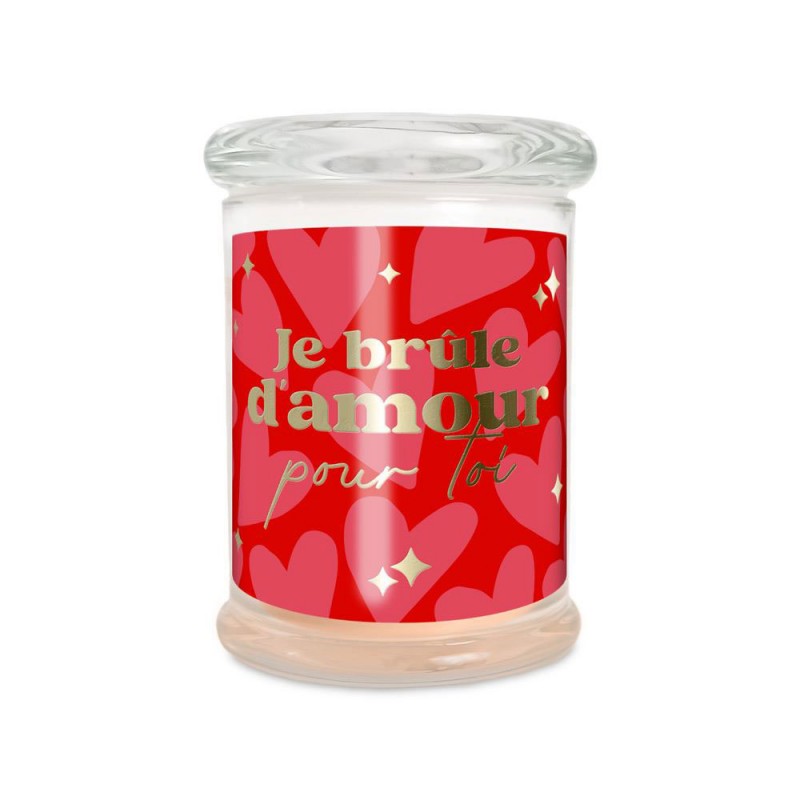 Différents modèles (au choix) : Je brûle d'amour pour toi (senteur jasmin), mon amour tu illumines ma vie (senteur jasmin) ou je t'aime d'amour (senteur rose).