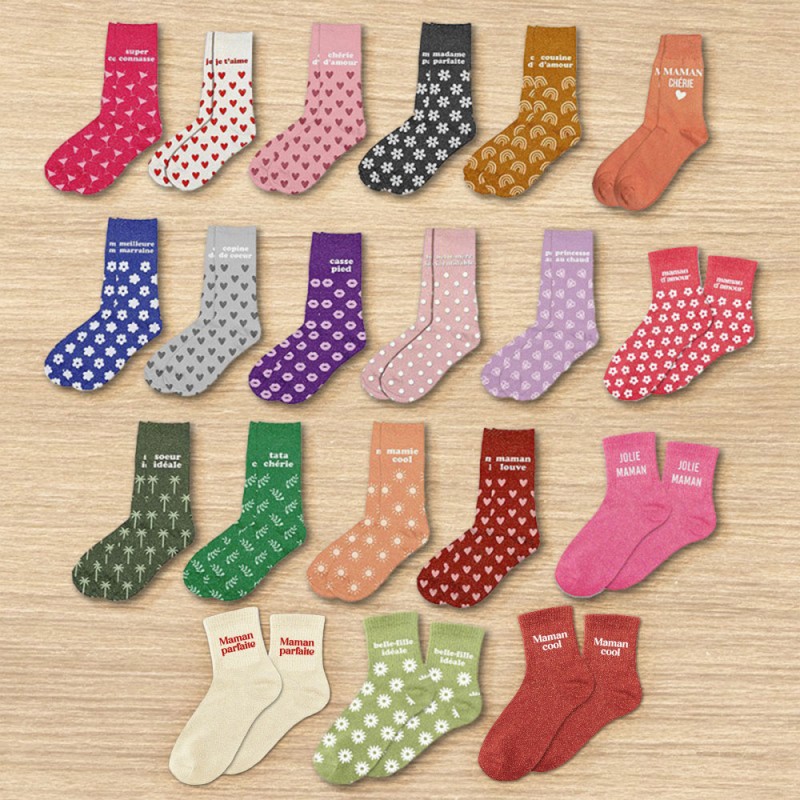 Plusieurs modèles au choix : chérie d'amour, madame parfaite, cousine d'amour, meilleure marraine, copine de coeur, casse pied, belle-mère formidable, princesse au chaud, super connasse, je t'aime, soeur idéale, tata chérie, mamie cool, maman louve, fille chérie, maman d'amour rose pâle, belle-fille idéale ou douce mamie.