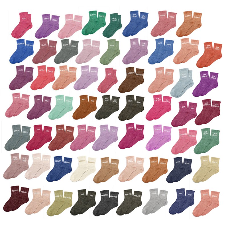 Chaussettes paillettes colorées mot fantaisie.
