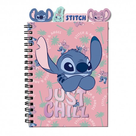 Petit set de papeterie Stitch & Angel Disney pastel (5 pièces) : bloc-notes à spirales, un crayon à papier, une gomme, un taille-crayon et une règle de 15 cm.